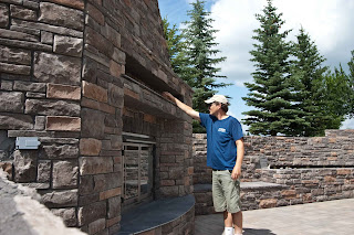 It came out pretty much as designed except for the 'hat' got bigger (client change order). Of course I would be remise (and risking my health) if I didn't give a huge amount of the credit to our great clients, our construction manager, carpenter, construction helpers (including Mike) & the crew that applied the cultured stone. Great job guys!